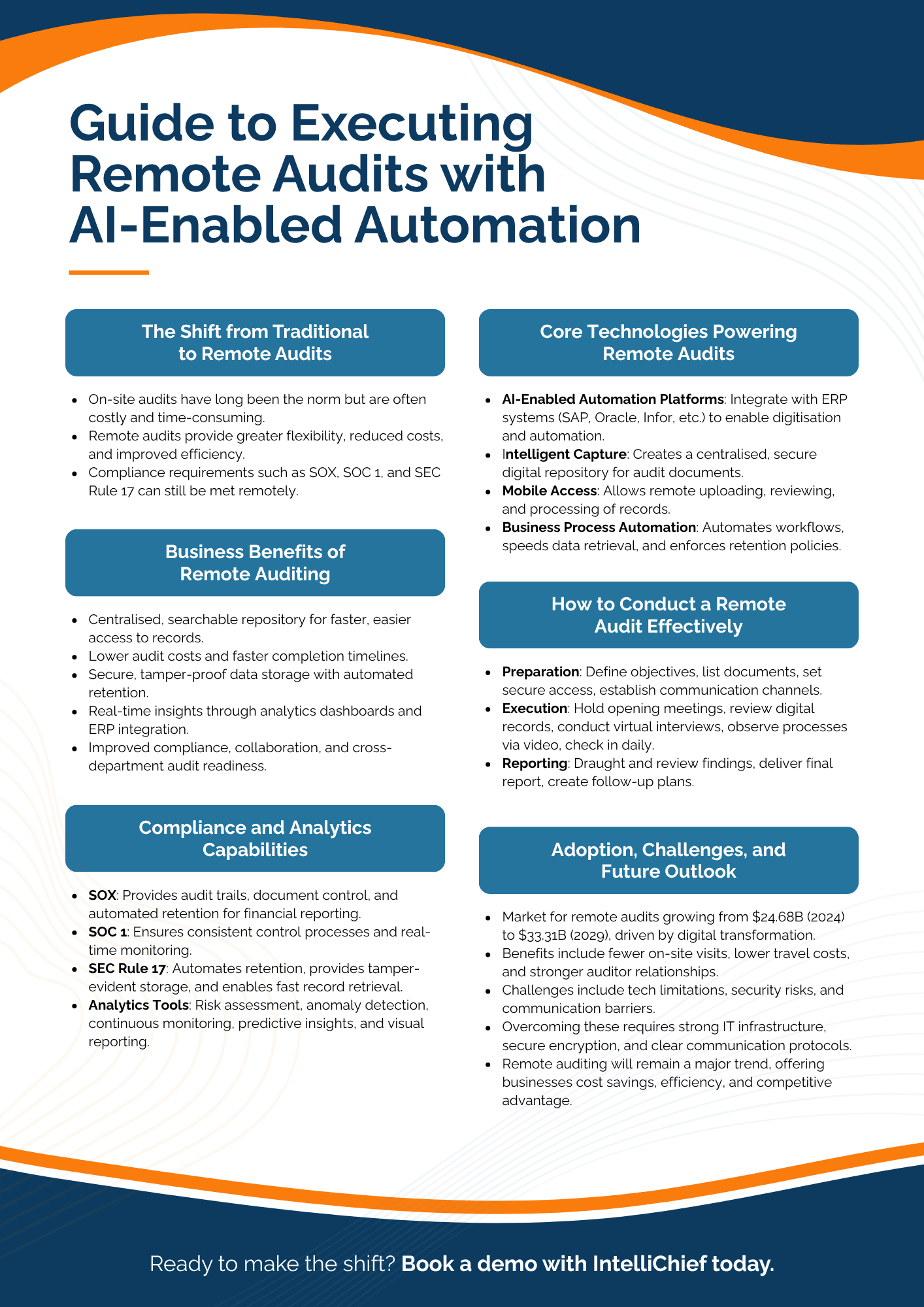 - Intelligent Capture and business process automation technologies are essential for successful remote auditing.